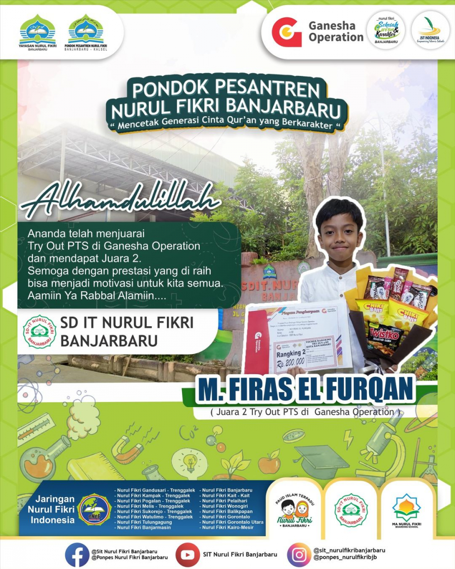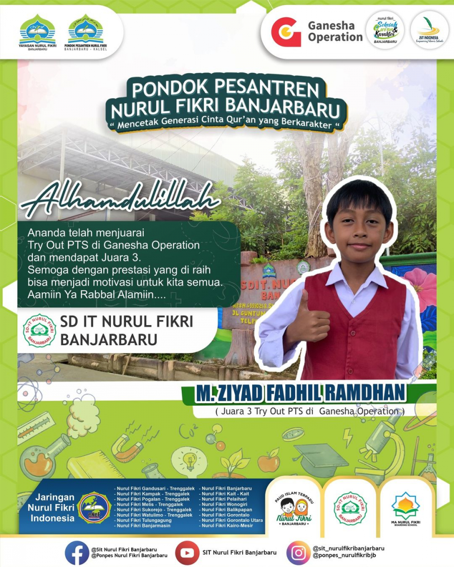 Prestasi SDIT Nurul Fikri Banjarbaru Admin Media Center 01 Desember 20220 Comments313 Pembaca Bagikan : Previous postNext post SearchCategoryBerita8Info Beasiswa0Informasi0Karir0Pengumuman2PPDB Nurul Fikri Banjarbaru0Prestasi1Tips Belajar0Blog Terbaru 04 Desember 2025TPA IT Nurul Fikri Banjarbaru Raih Akreditasi A 17 November 2025Selamat atas Diraihnya Akreditasi A dari BAN-PDM SDIT N.. 24 September 2025Pesantren Nurul Fikri Banjarbaru Gelar Qur’anic Leade.. 17 September 2025Selamat Atas Akreditasi A Perpustakaan SDIT Nurul Fikri.. 16 September 2025Santri MA NF Banjarbaru Lolos Masuk Universitas Al-Azha..PopulerSelamat dan Sukses atas Diraihnya Akreditasi A TKIT Nur.. 22 Januari 2023SMP-IT Nurul Fikri Banjarbaru Melaksanakan Kunjungan Ed.. 15 Oktober 2024TPA IT Nurul Fikri Banjarbaru Raih Akreditasi A 04 Desember 2025Selamat, Enam Santri Tholibah MA Ponpes Nurul Fikri Ban.. 17 Juli 2023Selamat Atas Akreditasi A Perpustakaan SDIT Nurul Fikri.. 17 September 2025DownloadPembiayaan MA IT Boarding NF 2026-2027 107.46 KB 1119 DownloadPembiayaan SMPIT NF Boarding NF 2026-2027 109.09 KB 1027 DownloadPembiayaan SMPT IT FULL DAY NF 2026-2027 104.88 KB 1077 DownloadPembiayaan SDIT NF 2026-2027 106.31 KB 1063 DownloadPembiayaan KB-TK IT NF 2026-2027 111.48 KB 1056 DownloadTagsNurul Fikri BanjarbaruRihlah Ukhuwah NFNurul FikriAkreditasiTKIT Nurul Fikri BanjarbaruMA Nurul Fikri BanjarbaruPonpes Nurul Fikri BanjarbaruNurul Fikri